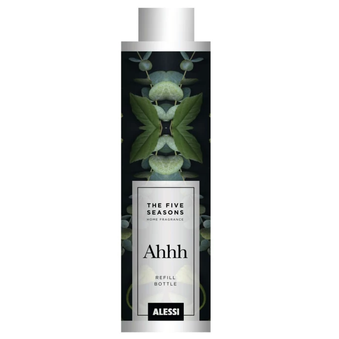 Mit der Nachfüllflasche 2 Ahh für den Duftspender aus der The Five Seasons Kollektion von Alessi bringen Sie einen erfrischenden und dezenten Duft in Ihr Zuhause. Die Duftkreation ist eine gelungene Mischung aus Grasnoten und Nuancen von Kardamom, Hyazinthe sowie Vetiver und wurde vom Designer Marcel Wanders kreiert. Diese Kombination erweckt alle Sinne und umhüllt Sie mit einem Wohlgeruch. Freuen Sie sich auf noch entspanntere und sinnlichere Stunden mit der Nachfüllflasche 2 Ahhh aus der The Five Seasons Kollektion von Alessi. The Five Seasons ist eine exklusive Kollektion mit fünf verschiedenen Essenzen und Accessoires für die Raumbeduftung. Fünf erlesene Duftnoten: Brrr ist belebend und prickelnd, Ahhh ist frisch und dezent, Hmm ist kräftig und wohltuend, Grrr ist vielschichtig sowie sinnlich und Shhh ist geheimnisvoll und spirituell. Tauchen Sie in die Duftwelt von Alessi ein und lassen sich verwöhnen!
