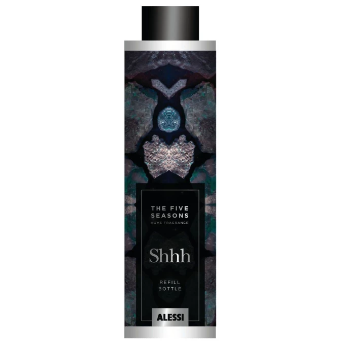 Mit der Nachfüllflasche 5 Shhh für den Duftspender aus der The Five Seasons Kollektion von Alessi bringen Sie einen geheimnisvollen und spirituellen Duft in Ihr Zuhause. Die Duftkreation ist eine gelungene Mischung aus Eukalyptus, Rose sowie Patchouli und wurde vom Designer Marcel Wanders kreiert. Diese Kombination erweckt alle Sinne und umhüllt Sie mit einem Wohlgeruch. Freuen Sie sich auf noch entspanntere und sinnlichere Stunden mit der Nachfüllflasche 5 Shhh aus der The Five Seasons Kollektion von Alessi. The Five Seasons ist eine exklusive Kollektion mit fünf verschiedenen Essenzen und Accessoires für die Raumbeduftung. Fünf erlesene Duftnoten: Brrr ist belebend und prickelnd, Ahhh ist frisch und dezent, Hmm ist kräftig und wohltuend, Grrr ist vielschichtig sowie sinnlich und Shhh ist geheimnisvoll und spirituell. Tauchen Sie in die Duftwelt von Alessi ein und lassen sich verwöhnen!