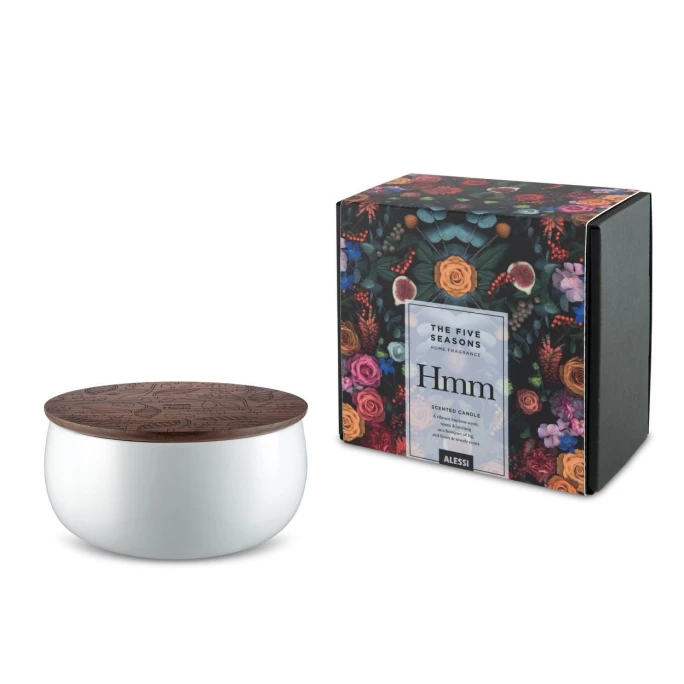 Die aromatische Duftkerze Large 3 W Hmmm aus der The Five Seasons Kollektion wurde von Marcel Wanders für Alessi kreiert. Sie präsentiert sich in einem eleganten weißen Porzellangefäß mit einem hochwertigen Deckel aus Eschenholz, welcher auch als Kerzenhalter verwendet werden kann. Die anregende Kerze verbreitet den Duft von Beerenfrüchten, Feigen und Holznoten. Diese prickelnde Kombination wird Sie verzaubern und Ihre Räumlichkeiten in einem angenehmen Wohlgeruch einhüllen. Die exklusive Kerze wurde in Italien mit Wachs auf pflanzlicher Basis und der Docht aus Baumwolle sowie Leinen hergestellt. Freuen Sie sich auf entspannte und sinnliche Stunden mit der Duftkerze Large 3 W Hmmm aus der The Five Seasons Kollektion von Alessi. The Five Seasons ist eine exklusive Kollektion mit fünf verschiedenen Essenzen und Accessoires für die Raumbeduftung. Die Duftkerzen sind in zwei Größen und fünf verschiedenen Duftnoten erhältlich. Lassen Sie sich betören!