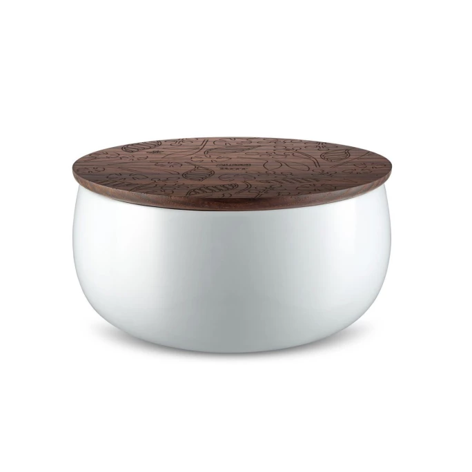 - Behälter aus Porzellan und Deckel aus Eschenholz