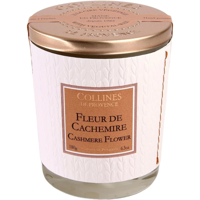Schaffen Sie sich mit der Kerze Couture Kaschmirblüte von Collines de Provence ein unvergleichliches Dufterlebnis in Ihrem Zuhause. Sie hat einen edlen, pudrigen Akkord, der so weich wie Maschenware aus Kaschmir ist und einen warmen Wohlgeruch verbreitet. Die von Hand gegossene und gefertigte Aromakerze besteht aus pflanzlichem Wachs. Sie ist mit einem edlen Deckel in goldrosa, welcher mit einer Prägung und einer handgenähten Banderole verziert ist, ausgestattet. Der Docht aus 100% natürlicher Baumwolle ermöglicht zudem ein sauberes Abbrennen. Collines de Provence fertigt alle Produkte in der Provence nach handwerklichen Methoden und französischem Know-how. Bei der Auswahl der Duftnoten und der Inhaltstoffe legen sie größten Wert auf Qualität und Natürlichkeit. Das spiegelt sich auch in den Duftkreationen wider. Mit der hochwertigen Duftkerze Couture Kaschmirblüte von Collines de Provence hüllen Sie Ihre Räumlichkeiten in einen angenehmen, eleganten Wohlgeruch. Wir bieten Ihnen in unserem AMBIENDO Shop weitere Aromakerzen in verschiedenen hochwertigen Duftkompositionen aus dem Hause Collines de Provence an. Lassen Sie sich von den verschiedensten Duftnoten verwöhnen!