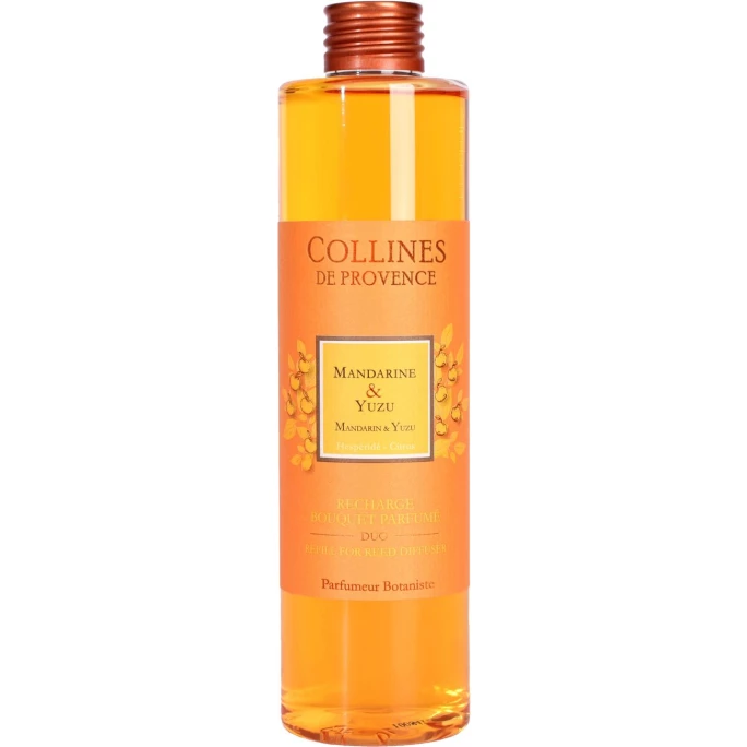 Lassen Sie sich in eine andere Welt fallen und genießen Sie den spritzigen Raumduft Duos Parfumés Mandarine & Yuzu von Collines de Provence. Er überzeugt durch einen Akkord aus säuerlichen Noten und üppigen Akzenten von frischen Zitrusfrüchten. Hierfür wurden geriebene Schalen vollreifer Mandarinen mit dem intensiv prickelnden Yuzu kombiniert. Mit dem praktischen Nachfüllduft können Sie Ihren Diffusor beliebig befüllen und Ihr Haus, Büro oder auch jeden anderen Raum immer in eine Wohlfühloase verwandeln. Collines de Provence fertigt alle Produkte in der Provence nach handwerklichen Methoden und französischem Know-how. Bei der Auswahl der Duftnoten und der Inhaltstoffe legen sie größten Wert auf Qualität und Natürlichkeit. Das spiegelt sich auch in den Duftkreationen wider. Sichern Sie sich mit dem Diffusor Nachfüller Duos Parfumés Mandarine & Yuzu von Collines de Provence viele frische und wohlriechende Stunden in Ihrem Zuhause. Wir bieten Ihnen in unserem AMBIENDO Shop weitere hochwertige Duftkompositionen aus dem Hause Collines de Provence an. Lassen Sie sich von den verschiedensten Duftnoten verwöhnen!