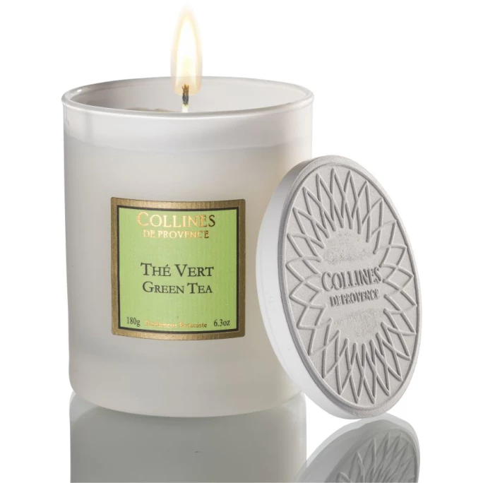 Schaffen Sie sich mit der Kerze Les Naturelles Grüner Tee von Collines de Provence ein unvergleichliches Dufterlebnis in Ihrem Zuhause. Die Aromakerze überzeugt durch einen erfrischenden, zitronigen und leicht rauchigen Duft, der Sie auf eine spannende Reise direkt in die Teeplantagen entführt. Sie ist von Hand gegossen und aus pflanzlichem Wachs gefertigt worden. Dieser sorgt dafür, dass die Kerze gleichmäßig und konstant schmilzt. Der metallfreie Docht aus 100% natürlicher Baumwolle ermöglicht zudem ein sauberes Abbrennen. Collines de Provence fertigt alle Produkte in der Provence nach handwerklichen Methoden und französischem Know-how. Bei der Auswahl der Duftnoten und der Inhaltstoffe legen sie größten Wert auf Qualität und Natürlichkeit. Das spiegelt sich auch in den Duftkreationen wider. Mit der hochwertigen Duftkerze Les Naturelles Grüner Tee von Collines de Provence hüllen Sie Ihre Räumlichkeiten in einen angenehmen, prickelnden Wohlgeruch. Wir bieten Ihnen in unserem AMBIENDO Shop weitere Aromakerzen in verschiedenen hochwertigen Duftkompositionen aus dem Hause Collines de Provence an. Lassen Sie sich von den verschiedensten Duftnoten verwöhnen!