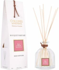 Lassen Sie sich in eine andere Welt fallen und genießen Sie den floralen Raumduft Les Naturelles Rosenholz von Collines de Provence. Es ist ein blumiger, rosiger und moschusartiger Duft, der sich mit einer berauschenden, leicht holzigen Note vereint und für ein besonderes Dufterlebnis sorgt. Der edle Duft schlängelt sich an den Rattan-Stäbchen entlang und sorgt so für eine ständige sowie gleichmäßige Verbreitung Ihrer Lieblingsessenz. Die gewünschte Intensität kann dabei ganz einfach durch die Anzahl der Rattanstäbe beeinflusst werden. Der sechseckige Diffusor ist nicht nur ein wunderschöner Duftspender, sondern auch ein hochwertiges und dekoratives Wohnaccessoire. Das luxuriöse Design des Flakons ist besonders elegant und veredelt jeden Stil im Nu. Mit dem Raumduft-Diffusor Les Naturelles Rosenholz von Collines de Provence sorgen Sie für eine wohlduftende Atmosphäre in Ihrem Zuhause. Collines de Provence fertigt alle Produkte in der Provence nach handwerklichen Methoden und französischem Know-how. Bei der Auswahl der Duftnoten und der Inhaltstoffe legen sie größten Wert auf Qualität und Natürlichkeit. Das spiegelt sich auch in den Duftkreationen wider. Wir bieten Ihnen in unserem AMBIENDO Shop weitere hochwertige Duftkompositionen aus dem Hause Collines de Provence an. Lassen Sie sich von den verschiedensten Duftnoten verwöhnen!