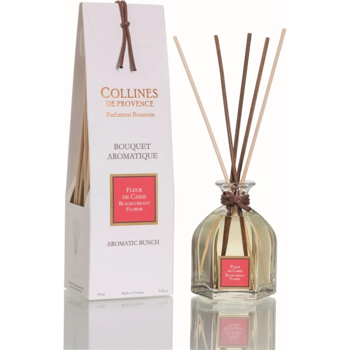 Lassen Sie sich in eine andere Welt fallen und genießen Sie den fruchtigen Raumduft Les Naturelles Schwarze Johannisbeerblüte von Collines de Provence. Er besticht durch ein Herz aus schwarzer Johannisbeere und Pampelmuse, welches für eine erfrischende und spritzige Note sorgt. Der energiegeladene Duft schlängelt sich an den Rattan-Stäbchen entlang und sorgt so für eine ständige sowie gleichmäßige Verbreitung Ihrer Lieblingsessenz. Die gewünschte Intensität kann dabei ganz einfach durch die Anzahl der Rattanstäbe beeinflusst werden. Der sechseckige Diffusor ist nicht nur ein wunderschöner Duftspender, sondern auch ein hochwertiges und dekoratives Wohnaccessoire. Das luxuriöse Design des Flakons ist besonders elegant und veredelt jeden Stil im Nu. Mit dem Raumduft-Diffusor Les Naturelles Schwarze Johannisbeerblüte von Collines de Provence sorgen Sie für eine wohlduftende Atmosphäre in Ihrem Zuhause. Collines de Provence fertigt alle Produkte in der Provence nach handwerklichen Methoden und französischem Know-how. Bei der Auswahl der Duftnoten und der Inhaltstoffe legen sie größten Wert auf Qualität und Natürlichkeit. Das spiegelt sich auch in den Duftkreationen wider. Wir bieten Ihnen in unserem AMBIENDO Shop weitere hochwertige Duftkompositionen aus dem Hause Collines de Provence an. Lassen Sie sich von den verschiedensten Duftnoten verwöhnen!