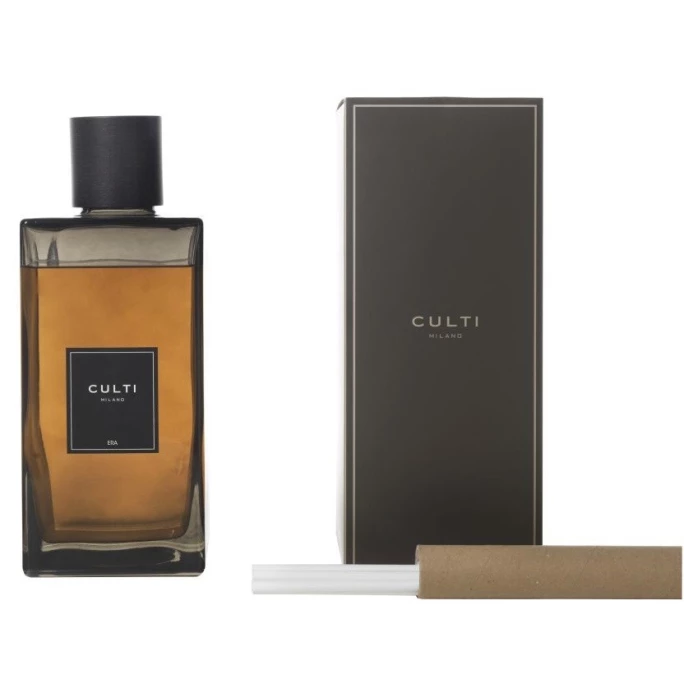 Lassen Sie sich verzaubern, von dem exklusiven Raumduft ERA aus dem Hause CULTI MILANO. Der Duft ERA überzeugt mit einer fruchtigen Kopfnote aus Cranberry und Cassis, einer Herznote aus Rosen und Amber, sowie einer Basisnote aus Zedernholz. ERA versprüht eine elegante Leichtigkeit in Verbindung mit einer blumig-fruchtigen Note. Die Diffusor-Flasche von CULTI MILANO ist nicht nur ein wunderschöner Duftspender, sondern auch ein besonders hochwertiges und stilvolles Wohnaccessoire, welches sehr dekorativ jeden Raum ausschmückt. Der feine Duft schlängelt sich an den Rattan-Stäbchen entlang und erfrischt jeden Raum mit Ihrer Lieblingsessenz! Die luxuriöse Flakon-Flasche ist besonders elegant und veredelt jeden Stil im Nu. Entdecken Sie den betörenden Duft ERA von CULTI MILANO und genießen Sie das ganz besondere Dufterlebnis.
