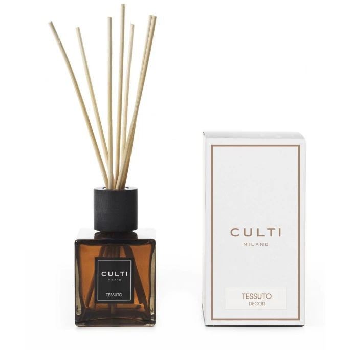 Lassen Sie sich fallen in eine andere Welt und genießen Sie den leichten geschmeidigen Raumduft Decor Classic Tessuto der Luxus – Marke CULTI. Seine leichte Geschmeidigkeit betört Ihre Sinne und lässt Sie in Träumen versinken. Der atemberaubende Duft umhüllt Sie samtig weich und schenkt Ihnen ein angenehmes Gefühl der Entspannung. Überzeugen Sie sich selbst. Der Diffusor von Culti ist nicht nur ein wunderschöner Duftspender, sondern auch ein besonders hochwertiges und stilvolles Wohnaccessoire, welches sehr dekorativ jeden Raum ausschmückt. Der feine Duft schlängelt sich an den Rattan-Stäbchen entlang und erfrischt jeden Raum mit Ihrer Lieblingsessenz! Das luxuriöse milchig-transparente Design des Flakons ist besonders elegant und veredelt jeden Stil im Nu.