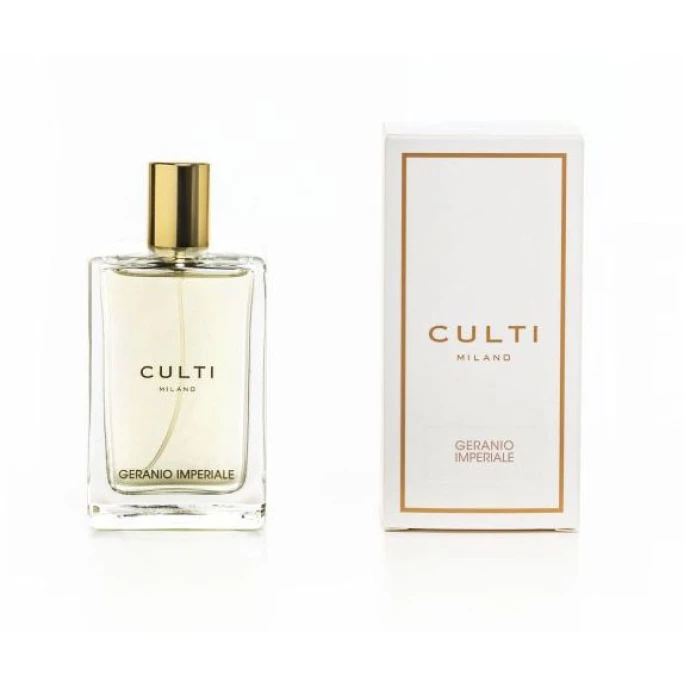 Das wohlriechende Körperspray Geranio Imperiale von CULTI bietet Ihnen die ganze Lebendigkeit der Natur und umhüllt Sie sanft. Geranio Imperiale ist ein köstlicher Duft, der die süßen Blumennoten von Geranie und Rose mit der Lebendigkeit vom würzigem Pfeffer und Kardamom verbindet. Die Aromen von Vetiver, Zedernholz und Moschus vereinen sich dabei in der Basisnote. Das moderne geradlinige Design des Flakons ist besonders elegant und veredelt jeden Stil im Nu. Mit dem exklusiven Körperspray Geranio Imperiale von CULTI sorgen Sie jederzeit für ein berauschendes Dufterlebnis. Wir bieten Ihnen in unserem AMBIENDO Shop weitere betörende Duftkompositionen von der Luxusmarke CULTI an. Lassen Sie sich von den verschiedensten Duftnoten verwöhnen. Diese können Ihre Stimmung beeinflussen. Je nach gewählter Duftrichtung kann es belebend, entspannend, stimulierend oder beruhigend wirken. Tauchen Sie ein, in die einzigartige Duftwelt von CULTI!