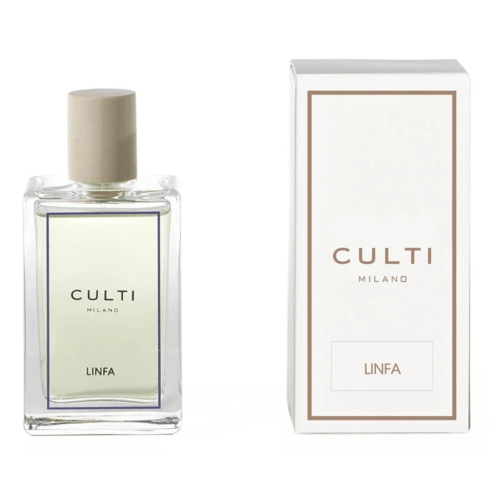 Wie ein Spaziergang durch einen paradiesischen Garten. Ein Meer von Blumen und Sträuchern duftet in voller Pracht vor sich hin. Diese und noch viele andere wunderbare Gedanken ruft das exklusive Raumspray Linfa von CULTI bei Ihnen hervor. Lassen Sie sich in ein prächtiges Blumenbouquet fallen, das kühl und raffiniert kombiniert ist. Der Duft hinterlässt durch die weiße Johannisbeere, Tuberose und eine Nuance von Zedernholz eine geheimnisvolle, blumige Leichtigkeit und Frische in der Luft. Es schafft eine unbeschreibliche Geruchswelt für Ihre Sinne. Mit dem aromatischen Raumspray Linfa von CULTI können Sie Ihr Haus, Büro oder jeden anderen Raum in eine Wohlfühloase verwandeln. Wir bieten Ihnen in unserem AMBIENDO Shop weitere betörende Duftkompositionen von der Luxusmarke CULTI an. Lassen Sie sich von den verschiedensten Duftnoten verwöhnen. Diese können Ihre Stimmung beeinflussen. Je nach gewählter Duftrichtung kann es belebend, entspannend, stimulierend oder beruhigend wirken. Probieren Sie es aus!