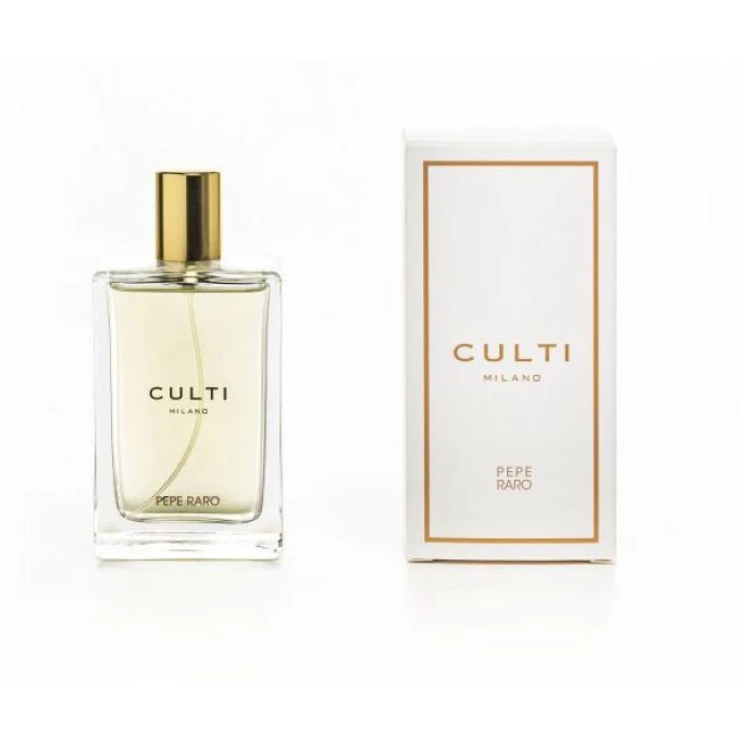 Würzig, spontan und unerwartet! Das wohlriechende Körperspray Pepe Raro von CULTI bietet Ihnen die ganze Lebendigkeit der Natur und umhüllt Sie mit einem originellen Duft. Dieser überzeugt durch die Frische der Bergamotte, welche mit einer scharfen Note von rosa Pfeffer wiederbelebt wird, bevor die aromatischen Noten von Wacholder mit der Süße von Jasmin gemildert werden. Die harmonischen Aromen von Zedernholz und Moschus vereinen sich dabei in der Basisnote. Das moderne geradlinige Design des Flakons ist besonders elegant und veredelt jeden Stil im Nu. Mit dem exklusiven Körperspray Pepe Raro von CULTI sorgen Sie jederzeit für ein berauschendes Dufterlebnis. Wir bieten Ihnen in unserem AMBIENDO Shop weitere betörende Duftkompositionen von der Luxusmarke CULTI an. Lassen Sie sich von den verschiedensten Duftnoten verwöhnen. Diese können Ihre Stimmung beeinflussen. Je nach gewählter Duftrichtung kann es belebend, entspannend, stimulierend oder beruhigend wirken. Tauchen Sie ein, in die einzigartige Duftwelt von CULTI!