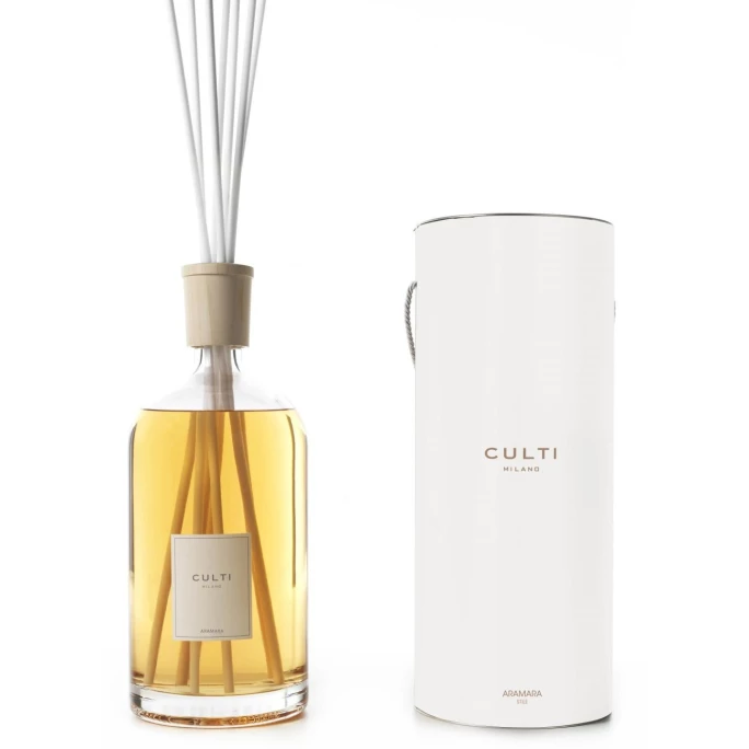 Ein gemütlicher Urlaubsabend in Sizilien. Herrliches Essen und bezaubernde Gerüche wecken sinnliche Erinnerungen. Mit dem wundervollen Raumduft Stile Classic Aramara von der Luxus – Marke CULTI wird zumindest ein Teil der vielen tollen Eindrücke wieder zum Leben erweckt. Der Duft versprüht eine elegante Leichtigkeit in Verbindung mit mediterranen Zitrusfrüchten und dem herrlichen Duft sizilianischer Orangen. Lassen Sie sich entführen in eine elegante Geruchswelt. Der Diffusor von Culti ist nicht nur ein wunderschöner Duftspender, sondern auch ein besonders hochwertiges und stilvolles Wohnaccessoire, welches sehr dekorativ jeden Raum ausschmückt. Der feine Duft schlängelt sich an den Rattan-Stäbchen entlang und erfrischt jeden Raum mit Ihrer Lieblingsessenz! Das luxuriöse milchig-transparente Design des Flakons ist besonders elegant und veredelt jeden Stil im Nu.
