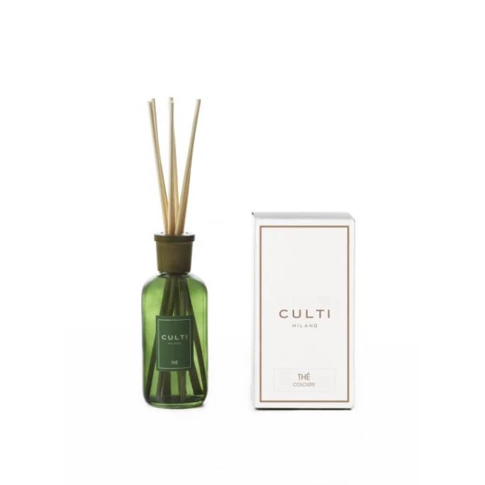 Lassen Sie sich von dem exklusiven Raumduft-Diffusor Stile Colours green The aus dem Hause CULTI verzaubern. Der exklusive Duft vereint erfrischende Bergamotte mit Aromen des edlen Sencha-Tees und schafft somit eine exotisch asiatische Atmosphäre. Das meditative Geruchserlebnis wirkt beruhigend und lässt Sie vollkommen entspannen. Die farbige Diffusor-Flasche ist dabei nicht nur ein geschmackvoller Duftspender, sondern auch ein sehr hochwertiges und stilvolles Wohnaccessoire. Der feine Duft schlängelt sich an den Rattan-Stäbchen entlang und erfrischt jeden Raum mit Ihrer Lieblingsessenz! Verwandeln Sie Ihr Zuhause mit dem Raumduft-Diffusor Stile Colours green The von CULTI in eine Wohlfühloase. Wir bieten Ihnen in unserem AMBIENDO Shop weitere betörende Duftkompositionen in verschiedenen Flakongrößen von der Luxusmarke CULTI an. Lassen Sie sich von den unterschiedlichen Duftnoten verwöhnen. Diese können Ihre Stimmung beeinflussen. Je nach gewählter Duftrichtung kann es belebend, entspannend, stimulierend oder beruhigend wirken. Probieren Sie es aus!