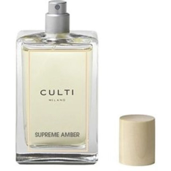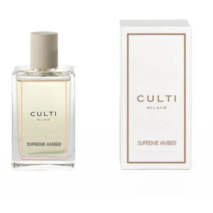 Sorgen Sie mit dem orientalischen Raumspray Supreme Amber von CULTI für ein unvergleichliches Dufterlebnis in Ihrem Zuhause. Es präsentiert sich in einem exklusiven, quadratischen Glasflakon und erinnert an einen sanften Sonnenuntergang inmitten eines Parks wenn der Sommer langsam in den Herbst übergeht. Die warmen und intensiven Duftnoten von Weihrauch und Patschuli werden durch die kostbare schwarze Vanille gemildert und durch den lebhaften Auftakt von Cyste sowie Chinotto erfrischt. Hierbei entsteht ein komplexer und tief reichender Duft, welcher die unterschiedlichen Facetten eines magischen Moments widerspiegelt. Mit dem aromatischen Raumspray Supreme Amber von CULTI können Sie Ihr Haus, Büro oder jeden anderen Raum in eine Wohlfühloase verwandeln. Wir bieten Ihnen in unserem AMBIENDO Shop weitere betörende Duftkompositionen von der Luxusmarke CULTI an. Lassen Sie sich von den verschiedensten Duftnoten verwöhnen. Diese können Ihre Stimmung beeinflussen. Je nach gewählter Duftrichtung kann es belebend, entspannend, stimulierend oder beruhigend wirken. Probieren Sie es aus!
