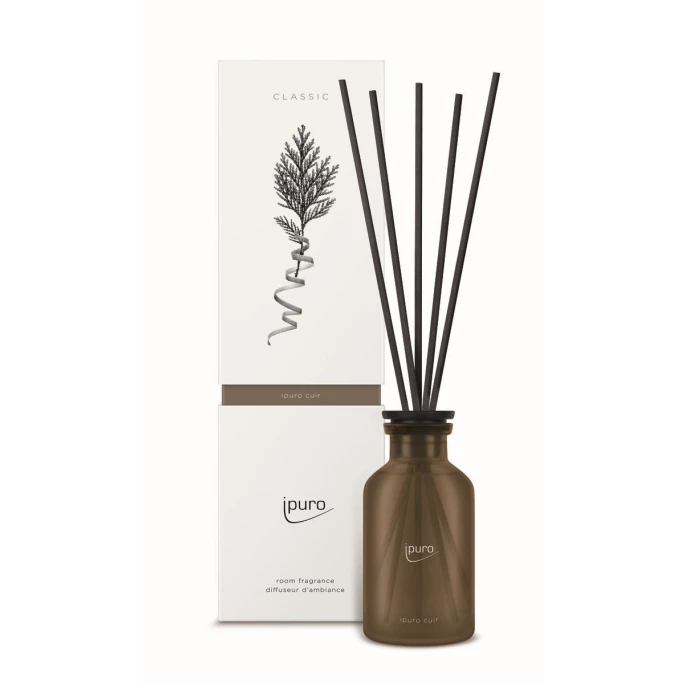 ipuro ist Marktführer für dekorative Raumdüfte und präsentiert mit seinen luxuriösen Raumdüften eine stilvolle Art, Ihrem Zuhause einen himmlischen und angenehmen Duft zu verleihen. Alle Produkte werden in Europa produziert und von den renommiertesten Parfumeuren Europas komponiert. Mit dem ipuro Classic cuir Raumduft können Sie sich jetzt eine warme und sinnliche Duftkomposition zu Ihnen nach Hause holen! Durch das Zusammenspiel von spritzigen Zitrusnoten, cremiger Vanille, warmem Leder und dunklen Hölzern verleiht der ipuro Classic cuir Raumduft Ihrem Zuhause diese ganz besondere Wohlfühl-Note. Ein Duft wie eine sinnliche Berührung, wie ein Feuerwerk an Gefühlen. Einen besonders gelungenen Auftakt machen Heliotrop und Zitrusnoten in der Kopfnote. In der Herznote ist ganz angenehm Leder wahrnehmbar. Orientalisch und sinnlich wird es durch die Vanille, Zedernholz, Cumarin in der Basisnote. Greifen Sie jetzt zu!