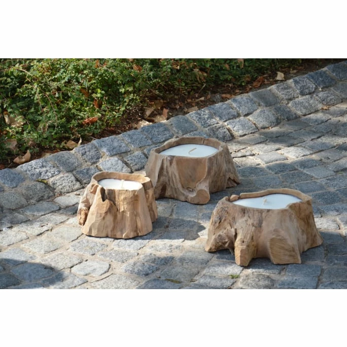 Verschönern Sie Ihren Außenbereich mit dem charakteristischen Windlicht FLOWER aus dem Hause Jan Kurtz. Es ist aus dem Holz der Teakwurzel geschnitten und mit weißem Kerzenwachs, welcher eine Brenndauer von ca. 15-25 Stunden beträgt, gefüllt. Wenn der Wachs verbraucht ist, können Sie den Holzbehälter erneut damit befüllen oder mit verschiedenen Accessoires hübsch dekorieren. Alternativ kann das vielseitige Windlicht auch als Schale für Obst oder Knabbereien verwendet werden. Jedes Objekt wurde zudem in Handarbeit gefertigt und ist daher ein Unikat, welches mit Astlöchern, Maserungen, Rissen sowie Wurmlöchern besondere Holzmerkmale und Unregelmäßigkeiten aufweist. Die Optik weicht von Stück zu Stück ab, wobei diese Individualität gewollt ist. Alle Unikat Artikel haben circa Maßangaben und können kippeln sowie uneben sein. Egal, wofür Sie das Windlicht FLOWER von Jan Kurtz in Ihrem Outdoorbereich verwenden möchten, hiermit sorgen Sie garantiert für einen besonderen Eyecatcher. Überzeugen Sie sich selbst!