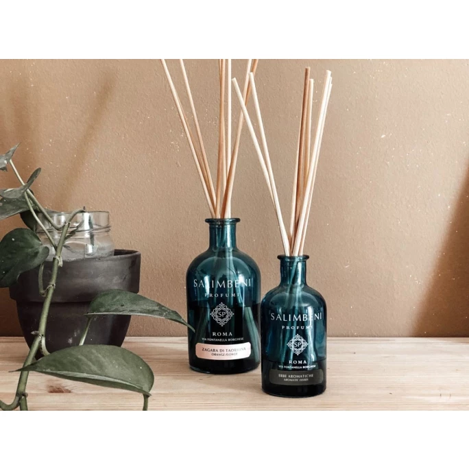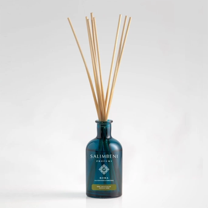 Ein raffiniertes Geschenk, ein hochwertiges und intelligentes Produkt: Ohne Strom oder Verbrennung verbreitet der ERBE AROMATICHE Raumduft ein wundervolles Dufterlebnis in Ihrem Zuhause. Der italienische Hersteller Salimbeni-Parfüms verwendet ausschließlich in Italien hergestellte Parfüms und verzichtet dabei auf den Zusatz von Farbstoffen. In dem eleganten Glasflakon befinden sich nur hochwertigste Duftessenzen, die über die mitgelieferten Bambusstäbchen gleichmäßig in die Raumluft verteilt werden. ERBE AROMATICHE: Die Komposition beginnt mit einer spritzigen Zitrusmischung. Yuzu und frischer Ingwer umarmen die Blütenblätter von Rose und Jasmin. Bernstein, Sandelholz und Vanille erzeugen eine Synergie unerwarteter, sinnlicher Noten. Der 100 ml fassende ERBE AROMATICHE Raumduft wird in einer hochwertigen Holz-Geschenkverpackung geliefert und ist für kleine Umgebungen wie Schreibtische oder das Gäste-WC geeignet. Je nach Temperatur- und Feuchtigkeitsbedingungen verbreitet das Salimbeni Raumparfüm bis zu 8 Wochen einen frischen und belebenden Duft. Gönnen Sie sich etwas Besonderes und betören Ihre Sinne mit dem ERBE AROMATICHE Raumduft von Salimbeni.