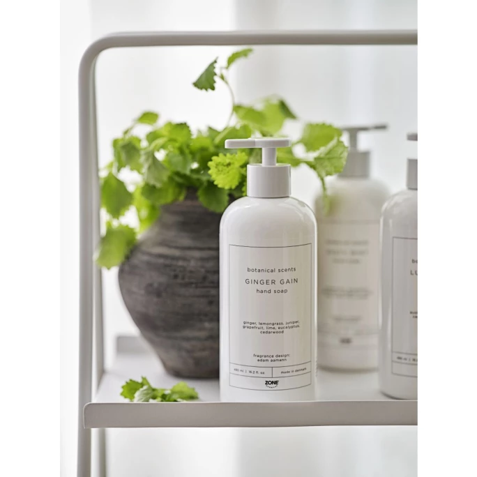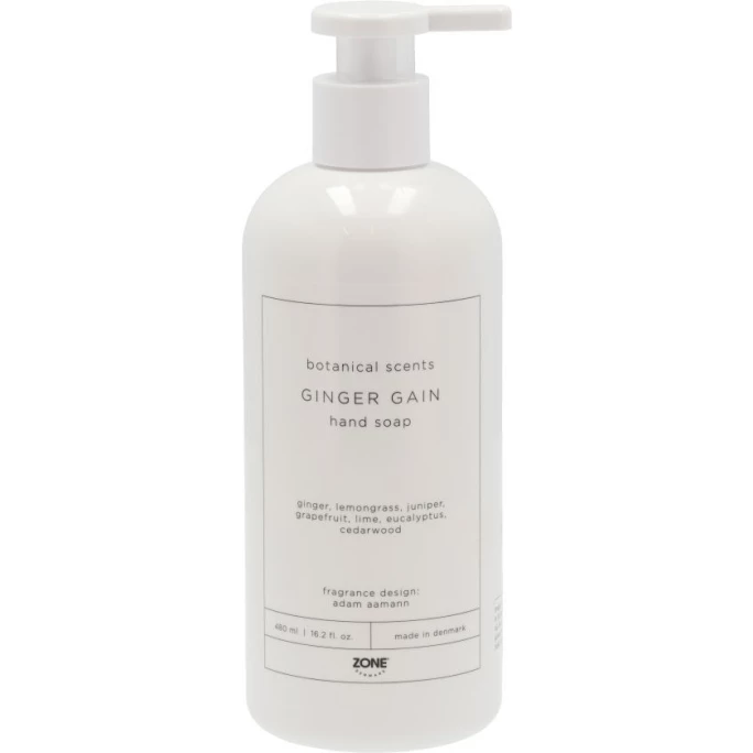 »ZONE Botanical Scents« sind exklusive, milde Dufterlebnisse, die in Zusammenarbeit mit dem Duftdesigner Adam Aamann entwickelt wurden. Entdecken Sie die Handseife BOTANICAL SCENTS GINGER GAIN von ZONE Denmark und lassen sie sich von den natürlichen Düften überzeugen. Auf der Basis von pflegender Bio-Aloe Vera, überzeugt GINGER GAIN mit einem Duft des Gemüsemarktes in Südostasien – starke und süße Düfte aus Ingweröl, Limette, Grape und Zitronengras, die von Wacholder, Eukalyptus und Zedernholz kontrastiert werden. Gemeinsam haben ZONE Denmark und Adam Aamann jetzt die Serie »ZONE Botanical Scents« mit Handseifen, Handdesinfektionsmittel, Gel und Spülmittel entwickelt – allesamt in Dänemark mit schönen, natürlichen Düften hergestellt. Sie entsprechen außerdem den pharmazeutischen Qualitätsanforderungen und dem anspruchsvollen GMP-Standard. Alle Rohstoffe sind frei von Umweltgiften, Mikroorganismen und anderen Schadstoffen. Sämtliche Produkte der Serie »ZONE Botanical Scents« erfüllen die Anforderungen der Kosmetikverordnung und der Chemikalienvorschriften der EU. Lassen Sie sich von den unterschiedlichen Aromen verwöhnen und überzeugen Sie sich selbst von der hochwertigen Handseife BOTANICAL SCENTS GINGER GAIN von ZONE Denmark!